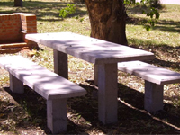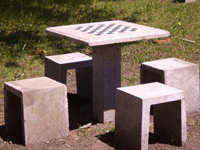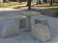 El conjunto Trapezoidal son piezas en HºAº, formado por cuatro bancos y una mesa cuya superficie cuenta con un tablero de ajedrez.