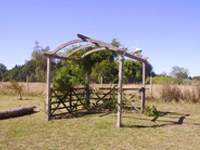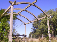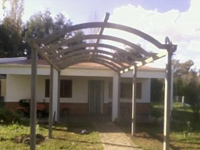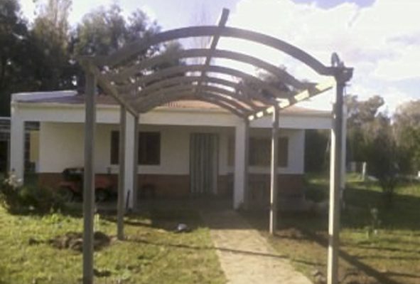 Pergolas de hormigón Las pérgolas de nuestra fabricación están compuestas por 4 columnas de apoyo que se colocan 60 cm bajo suelo, 3 vigas que sostienen los 4 arcos y 6 puntas decorativas, estas ultimas dan la opción para que al acoplarse las vigas aumentar el largo de la pérgola de tres (3) a seis (6)metros y así sucesivamente. Su altura es de 3 mts y un largo variable 3/6/9mts